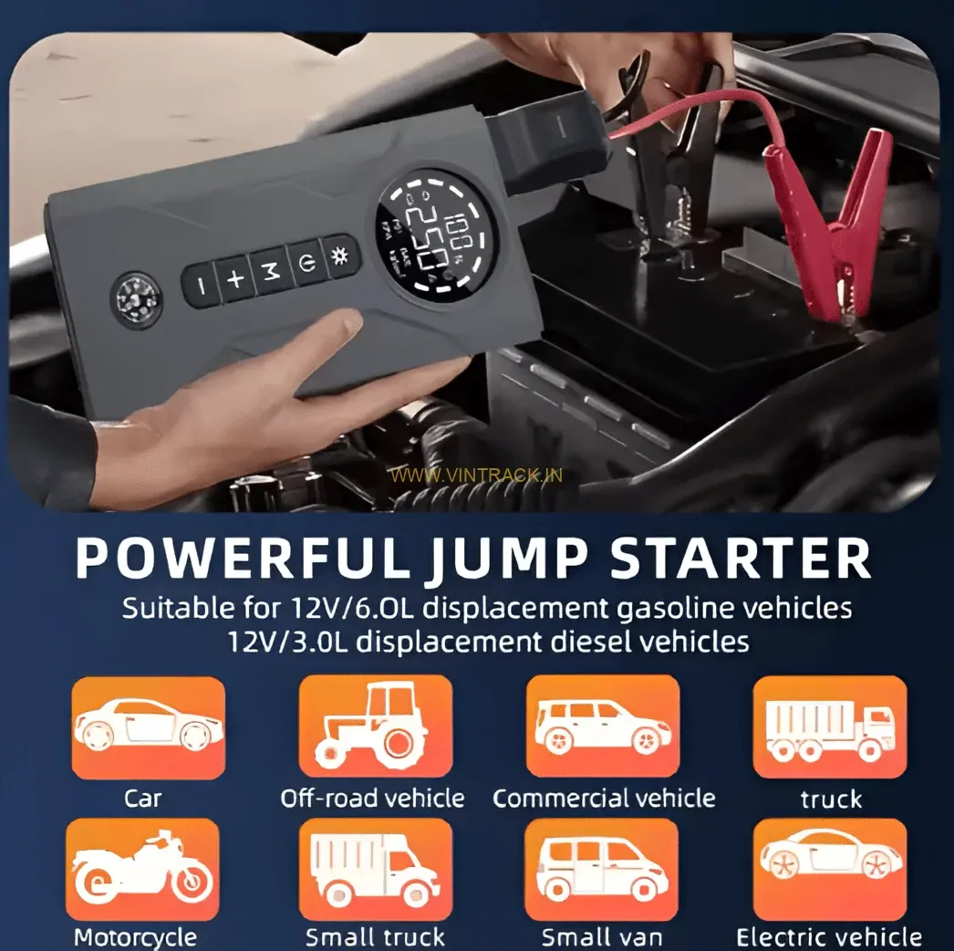 جهاز طوارئ متكامل للسيارة – باور بانك + منفاخ هواء + إضاءة LED